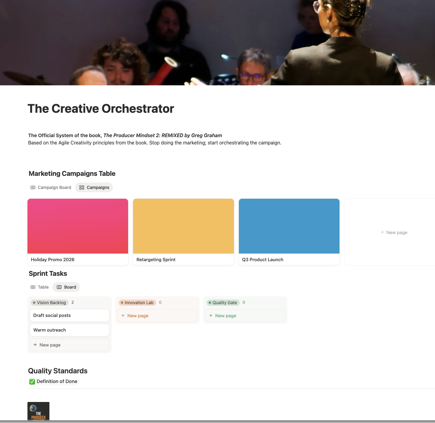 The Creative Orchestrator is the official Notion operating system from the book, The Producer Mindset 2: Remixed.