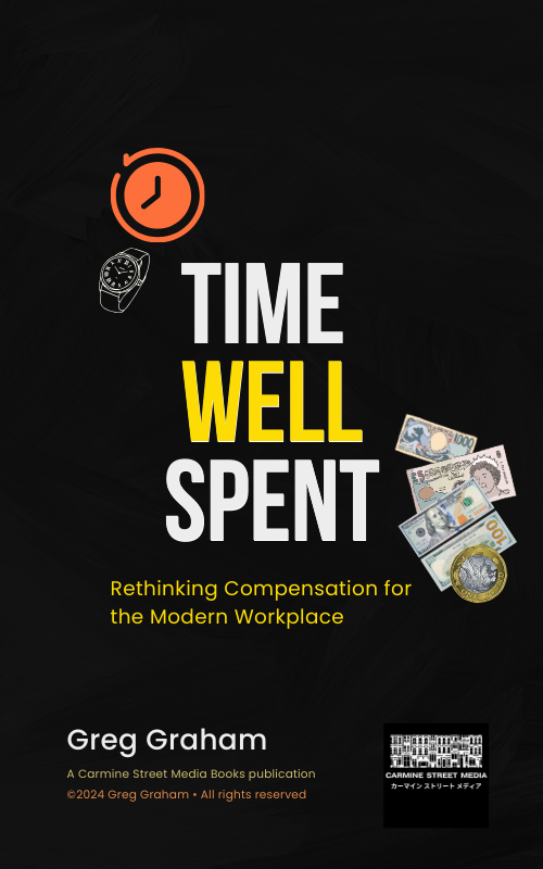 Book cover titled "Time Well Spent" by Greg Graham, with images of clocks and various currency notes on a black background.